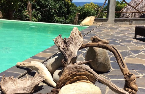 Inspired by local architecture, this haven of peace overlooks the sea and the surrounding tropical nature. Surrounded by a beautiful landscaped garden, a few minutes walk from the beautiful Ambondrona beach and its restaurants, this superb villa recently built and regularly maintained, hosts an infinity pool with its lower pool and its bar in rosewood. The outdoor living spaces open onto a lush garden, a very high ceiling under an impressive framework of exotic wood contributes to the majesty of the place. The interior living room where the beige color dominates, brings a refined and soft atmosphere conducive to relaxation. The interior decoration, refined and refined, highlights the nobility of the materials used. Spacious and ventilated rooms, equipped with king size beds with mosquito nets benefit from an en-suite bathroom. Italian showers in a sleek and design style, with touches of precious wood and stones. The kitchen dressed in slate and rosewood enjoys a panoramic view of the tropical jungle. A second kitchen near an outdoor barbecue, will be the ideal place to cook the fresh fish of the day bought directly from the fishermen found on the beach. The attentive and friendly staff will ensure your comfort throughout your stay. The rental package also includes the services of Fredine who will concoct the specialties of the country for your enjoyment.