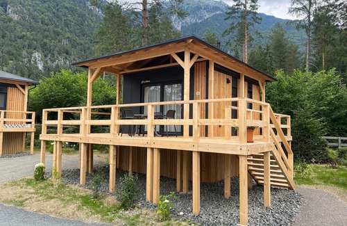 This detached, single-storey chalet is located in the beautiful, restyled holiday park Resort Pressegger See. It is located in the small hamlet of Presseggen, a stone's throw from the beautiful Pressegger See. There is a shared swimming pool within the property so you can enjoy refreshing dives and beat the scorching summers in style. There is a spacious terrace where you can linger with your morning coffee and garden furniture where you can enjoy a wholesome breakfast and unwind after an active day outdoors. You can play golf at a golf club only a short drive away for some adrenaline rush and also can indulge in cross-country skiing in a ski area only 26 km away from the stay. Erlebnis-Naturbad Vorderberg is a waterpark only 11 km away where you can have a gala time with your loved ones. Nockeberg Biospehere Reserve is around a 1.5-hour drive away and is a mountaintop habitat with trails through meadows & forests, home to eagles & deer, with guided tours. The chalet is fully and comfortably furnished. Nice and great for a holiday for two in the middle of nature. The chalet is located in a higher location. You reach the entrance via a staircase. The layout is like that of a studio. The pleasant living room with TV is separated from the sleeping area (with a comfortable double bed) by an open wall. In the open-plan kitchen, you will find, among other things, a microwave and a dishwasher. In the bathroom, you will find a shower and toilet. For even more comfort, there also is air conditioning. There is parking provided to keep your cars safe and scratch-free.The outdoor life takes place on the wonderful, partly-covered terrace with garden furniture. There is parking for one car at the chalet. At holiday park Resort Pressegger, various mobile homes and chalets can be booked for two to six people. The bus stop is only 650 m away, while the train station is 3.2 km away.