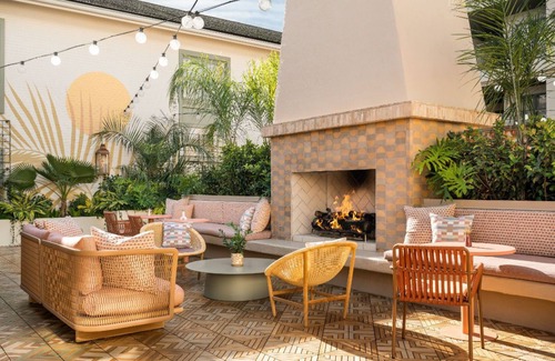 • Poolside Relaxation: Unwind at the outdoor pool, complete with stylish poolside seating and service from Little Palm.