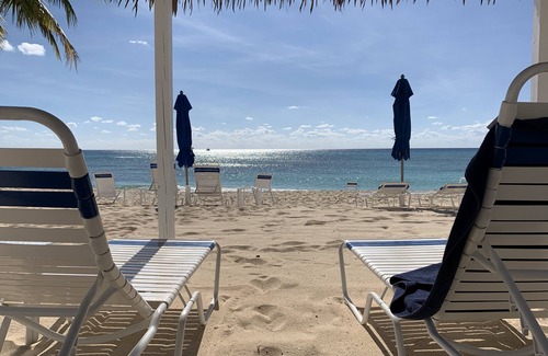 You will enjoy a relaxing stay right on the beautiful sand of Grand Cayman's famous Seven Mile Beach. Our screened patio is open on two sides offering unrestricted views of the coastline to George Town. We're one story off the beach - you'll have quick and easy access to the beach plus privacy and a great view of the ocean and the pool.