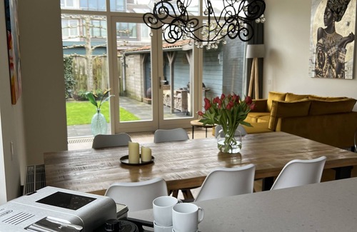 Corner house with a high-quality finish, cozy garden-oriented living room with loft and patio doors to the garden and terrace with large table and 2 sun loungers. Open kitchen with all appliances including dishwasher, washing machine and dryer in a separate room. 3 bedrooms (2x double bed and 1x single bed), 1 on the 2nd floor, a private garden in a quiet neighborhood, on the edge of the artists' village of Bergen. Including 2 bicycles that take you to the bustling center in 5 minutes and to the beach in 6 km. Private driveway for 2 cars. Wifi throughout the house and also cable TV in bedroom 1. Rental price includes bed linen and towels (not beach towels) and tourist tax. excl. cleaning costs. rental period at least 1 week from Saturday to Saturday.