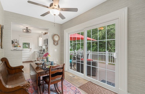 The Cottage at The Grange is located on the peaceful Potowomut River. It is a beautiful and newly renovated 2 bedroom (king, 2 twin beds) / 2 full bath home with all the modern amenities and conveniences expected from a luxury short-term rental while maintaining the historic charm of this colonial estate. Cook a gourmet meal in the stocked kitchen or BBQ on the deck. Situated on 11 pristine acres enjoy private tennis/pickleball courts, kayak access to Greenwich Bay and much more!