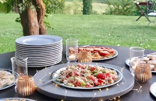 A nearby medieval village 3 minutes driving distance offers basic shops: minimarkets, butcher, bakery, pharmacy and groceries, for guests' convenience. In the village there is an excellent restaurant, the best of the entire area. If you are planning your vacation in August you'll be delighted to attend a local festival, it is a vibrant event that brings the village back to the past, offering glimpses of Medieval life.
