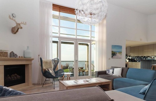 The Strandvilla+ is a spacious, luxurious, detached Strand Villa located directly on one of the surf beaches. So, step out the door of your beach villa and step right onto your surfboard! This type has a large garden and a spacious balcony from where you can enjoy a fantastic view of the IJsselmeer. The generous living room with a beautiful fireplace is completely decorated in "beach style" with light colors. The open kitchen has a dishwasher, oven, microwave, Senseo machine, coffeemaker, kettle, toaster, and fridge/freezer. One floor down, you will find three tastefully decorated double bedrooms. The bathroom features both a bathtub and shower. The base comfort level of each 6p. Strandvilla+ is the same, but the furnishing and extras can differ between villas. Would you like to reserve a particular address? Then select it while making the reservation under "select on map".