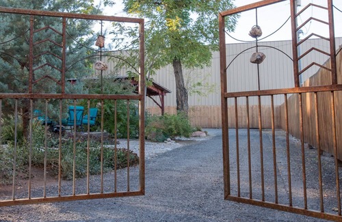 This condo is on the second floor. It's perfect for a couple and can accommodate four people because it has a hide-a-bed couch. Comfortable leather furniture, Tiffany lamps, memory foam mattress, travertine shower, and high speed internet access make this a fabulous place to spend your vacation. Even on the busiest weekends it is a quiet retreat with a huge and beautifully xeriscaped backyard for your enjoyment. Off street parking in back can accommodate several cars, a jeep trailer, or a small motorhome or camper.