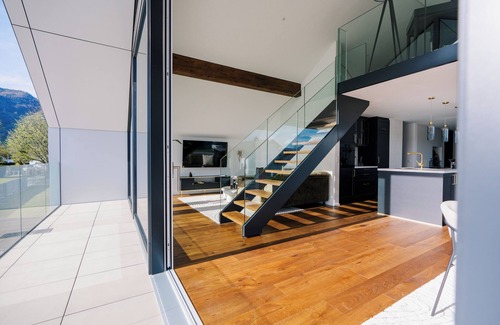 Massive Windows for scenic views of the surrounding Swiss and Austrian mountains