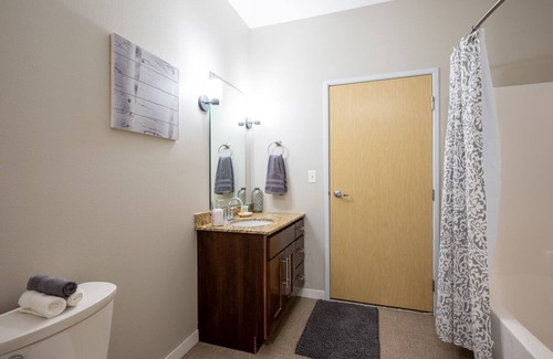 This luxurious unit is a part of a beautiful newer apartment complex and is located in a quiet part of town. This property includes 2 bedroom and 2 bath, plenty of room for the whole family to enjoy. Find it easy to stay in with full kitchen and laundry access, or enjoy the town with its prime location. The spaciousness, immaculate decor and furnishings make it a perfect place to call home on your stay in the