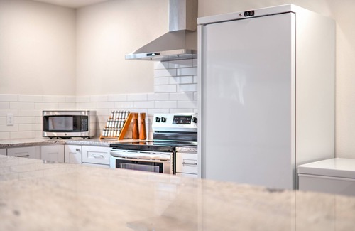 Enjoy the fully stocked kitchen with plenty of counter space. The island is an entire slab of granite, so you'll have more than enough space to entertain all of your guests!