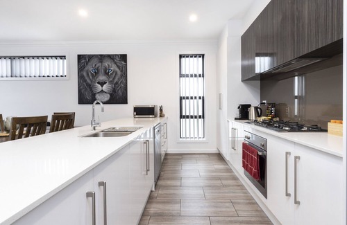 •Kitchen featuring stone benchtops, stainless-steel appliances and dishwasher. Microwave, coffee machine & soda stream also available