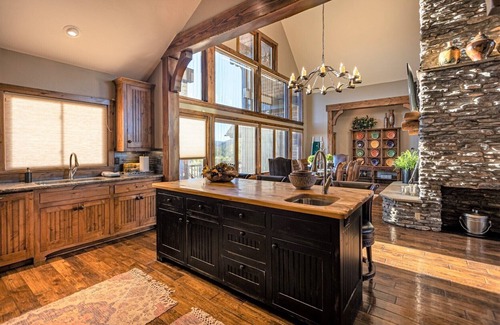 You enter the home through a dramatic 2 story entry way with stairs that lead up to the main level of the home where everything is located. The Great Room has a living room and dining room each with different views of the majestic San Juan mountains with a two sided wood fireplace between each room. Large flat screen TV's are mounted on each side of the rock fireplace. Both sides of the room has walk out patios to enjoy the views with a cup of coffee or an afternoon drink. The well equipped, large kitchen opens to the dining side of the Great Room. There is also a laundry room and full bathroom off of the living room area.
