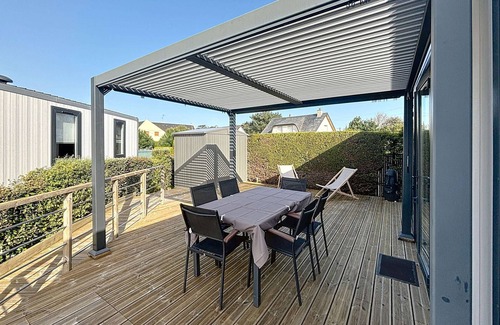 Luxury Mobile Home: 2 Bedrooms, 2 Bathrooms, Heated Pool, 200m from Beach, Parking Included is located in Jullouville-les-Pins. Luxury Mobile Home: 2 Bedrooms, 2 Bathrooms, Heated Pool, 200m from Beach, Parking Included provides accommodation, featuring Pool, Balcony/Terrace, Security/Safety, among other amenities. This House features Pool, Balcony/Terrace, Security/Safety, to make your stay a comfortable one.