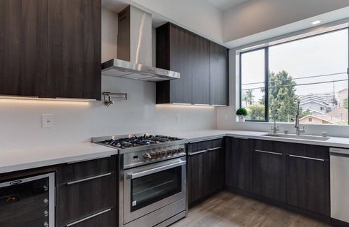 Enjoy a stylish experience at Experience luxury living in this newly built modern masterpiece. This 4-bedroom, 4-bath home boasts world-class finishes, soaring ceilings, and an open-concept layout perfect for families or long-term guests. Enjoy a rooftop deck with breathtaking views, a chef’s kitchen, spa-like bathrooms, smart TVs, in-unit laundry, and a private 2-car garage. Centrally located near LA’s top attractions, shops, and dining. This centrally-located place.