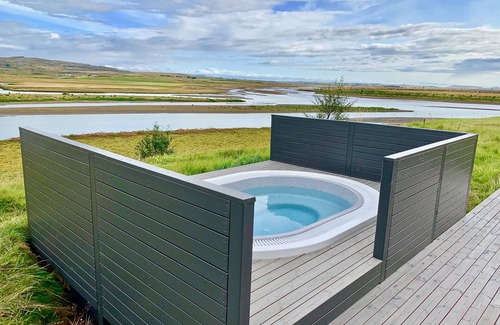 Luxury, Modern, HotTub with Fantastic River/Mountain View on the Golden Circle | Cottage in Selfoss