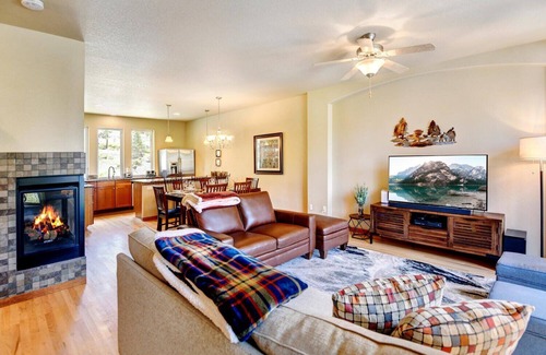 With 2 beautifully appointed bedrooms and 2.5 bathrooms, this spacious 1,600 square foot chalet accommodates up to 7 guests. The master suite features a plush king bed, while the guest room is perfect for families with a queen bed and a full-over-queen bunk bed, ensuring everyone has a cozy place to rest after a day of exploring.