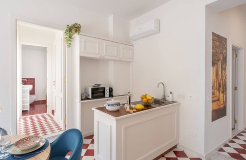 Our new accommodation in the very heart of Sorrento, Fuoro Charming & Elegant Accommodation is situated in the exclusive area of the historic center, comfortably accommodating up to 12 guests. Perfect for families or groups of friends, this unit is located on the second floor of a historic building and offers a range of high-quality amenities, including air conditioning, complimentary Wi-Fi, Smart TV, and a private terrace with a solarium area, outdoor sofas, and a dining table with chairs for alfresco dining. With four bedrooms, two living rooms with kitchens and sofa beds, six modern bathrooms, this property provides a unique and exclusive opportunity to enjoy Sorrento and the Amalfi Coast.