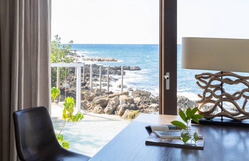 Get pampered at this modern architectural gem, perched on a rocky shoreline off the beaten path. With private beach, a stunning infinity-edged pool, and all the amenities you'll ever need . Full-service staff -- including chef and housekeepers -- will ensure you hardly ever lift a finger. Whether it’s relaxing in a garden hammock or nature-watching as you sit on the pool deck, this place will recharge your soul.