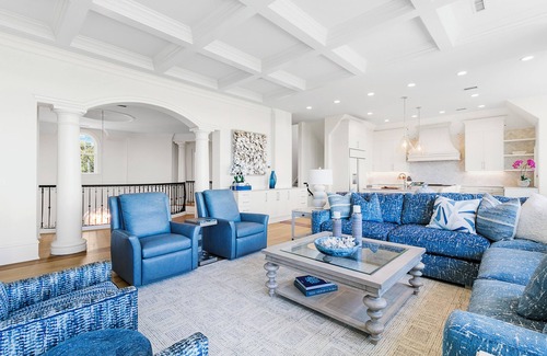 Guests will enjoy the first-floor rear bedroom suites with their own glass doors inviting in sea breezes and leading to the covered terrace. To the front of the home lies a third guest suite, and a children's suite with a loft feel supplies a window seat and built-in captain's beds.
