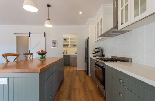 Accommodations are equally indulgent. Two spacious and private bedrooms, each offering a queen-sized bed, walk-in wardrobe, and luxurious en-suite with a walk-in shower. Enjoy serene bush views from the comfort of electric-blanket-warmed beds dressed in premium linen. Each room is climate-controlled, featuring reverse-cycle heating and cooling, as well as ceiling fans, to ensure year-round comfort. Quality toiletries and fluffy towels are also provided for your comfort and relaxation.