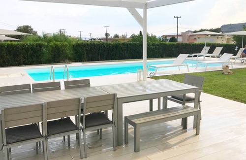 Yes, this Luxury on Rhodes has a swimming pool. Check the Facility Overview section for details about the pool and other available facilities.
