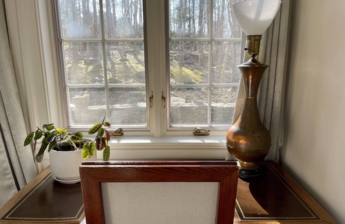 Nestled in nature, this luxurious property is situated on 3.5 park-like acres with two streams that wrap around the house and flow into the nearby pond. This one-of-a-kind estate has breathtaking views, deluxe amenities, and comes fully stocked for all your vacation needs. Relax in the comforts of the home or enjoy the blue stone patios, heated gunite pool & spa, private tennis court, or kayaking on the pond. Secluded yet conveniently located, the property is a mere 15 minutes away from shops, restaurants, and the shoreline.