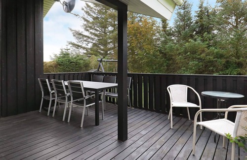 Layout: open kitchen(cooker(electric), hood, coffee machine, microwave, dishwasher, freezer(1-59L), fridge-freezer), Living/bed room(TV(german television channels, danish TV channels (DR1 and TV2)), DVD player, radio, CD player, stereo unit, high chair), bedroom(double bed, children's bed), bedroom(double bed), bedroom(2x single bed), bedroom(2x single bed), bathroom(floor heating)(tumble dryer, bathtub or shower, washbasin, toilet, washing machine), bathroom(floor heating)(bathtub or shower, washbasin, toilet), mezzanine, carport, Bubble bath(indoor, heated, 2 persons), sauna(indoor, heated, 4 persons), heating(electric), terrace, terrace(roofed), garden, BBQ, play equipment