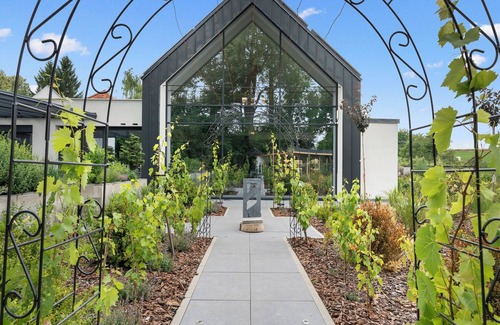 "Luxury Retreat Resort", 15-room house 550 m2 on 2 levels. Spacious, modern and luxurious furnishings: open living room with 1 double sofabed, open-hearth fireplace and TV. 1 room with 1 double bed (180 cm), shower/WC and TV. 1 room with 1 bed and 1 double bed (180 cm), shower/WC. Open living room with open-hearth fireplace, dining table, kitchen corner, TV and air conditioning. 1 room with 1 double bed (160 cm), TV. Large living room with dining table, kitchen corner, hydro massage shower and TV. 1 room with 1 double bed, bath/WC and TV. Walk-through room with bath/WC. 1 room with 1 double bed and TV. Exit to the terrace. 1 room with 1 double bed and TV. Exit to the terrace. Open kitchen (oven, dishwasher, 4 induction hot plates, toaster, kettle, microwave, electric coffee machine, Capsules for coffee machine (Nesperesso)) with dining table. Shower/WC, hydro massage bath. Upper floor: 1 room with 1 double bed (180 cm), shower/WC. Playroom with 1 bed and TV. Open gallery with Dressing room with 1 double bed (180 cm), bathroom. 1 room with 1 double bed, bath/WC and TV. 1 room with 1 double bed, shower/WC and TV. Sep. WC, hydro massage bath (private). Large terrace 40 m2, terrace 25 m2. Terrace furniture, barbecue (portable). Beautiful view of the garden. Facilities: washing machine, dryer. Internet (WiFi, free). E-charging station. Please note: non-smoking house. Maximum 2 pets/ dogs allowed. No lift. Available in the complex: 3 x grill, 4 x hydro massage bath, 1 x Swimm Spa with counter-current, stainless steel heating barrel for 6 people, sauna, petanque court, gazebo on the pond, summer kitchen with seating for up to 20 people with grill and tap equipment and cooling for 4 drinks. On request: 3 x room with 1x bed and 1x double bed (180 cm) and shared bathroom with shower and toilet.