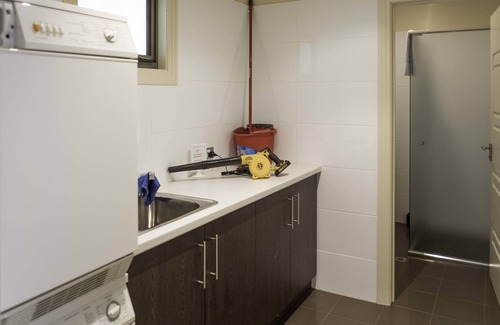 The open plan living area comprises of a fully equipped kitchen with granite tops, glass splash back and European appliances including dishwasher, oven, steam oven, plate warmer, induction cook top, microwave, Nespresso pod-coffee machine and a generous supply of cooking equipment, crockery, cutlery and glassware. The custom made timber table has formal seating for 12 but can seat more using other chairs around the house. The huge living area has a large screen TV, useful for corporate power presentations as well as footy, movies and computer games. There is also a DVD player and a PSP2 games console with a number of games and 'sing-star' contests to get everyone involved and relaxed. All of these look out of oversized glass doors and windows to the balcony and the river. On the balcony is a hardwood outdoor setting, a pizza oven and an outdoor heater so you can sit outside even during those slightly cooler seasons.