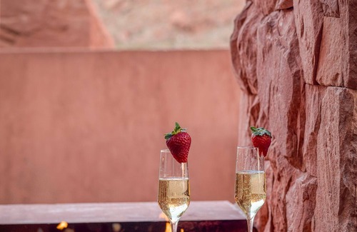 Architecturally significant, one of a kind, residence with personal host service for rent in Padre Canyon, surrounded by Snow Canyon State Park, Red Cliffs Desert Reserve and adjacent to Tuacahn Center for the Arts.