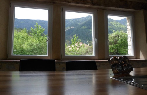 It is in the heart of the Toulourenc valley, at the top of Vaucluse, on the border of the Drome Provençale, in the lavender country that you will find the small village of Savoillans backed by the north slope of Mont Ventoux. Ideal place for lovers of the great outdoors, hiking, mountain biking, cycle tourism, paragliding, etc. The landscapes are spectacular, absolute calm. At the exit of the village, in the middle of the fields, Céline and Hervé restored an old family sheepfold for years, with the desire to keep it its old charm while using for its renovation and its fitting out the latest materials and equipment. decoration is original and neat, like red copper radiators, designed by Céline and produced by a local heating artist. It is also thanks to their passion for travel that various objects and decorations have found a home. Housing with surprising surfaces, you will have a large main room of 70 m² with dining area with a large table and armchairs for 8 people, a large central fireplace, and the lounge area with its sofas and flat screen TV Canalsat connected LED. Very bright room with a huge window, 2 Vélux, and murderous, overlooking the interior courtyard, this will certainly be your place to live. The house is equipped with high speed wi-fi internet. The large kitchen with its stone walls and its huge central island in solid walnut, has all the modern equipment (US fridge, microwave, large capacity oven, hob, extractor etc ...), the dining area offers various views over the village, the mountain, or the valley through large windows and bays. The floors of the house were made of waxed concrete with pebble decorations from Toulourenc. On the ground floor, the bedroom and its direct access to the interior courtyard (bedside tables, storage cupboard). The toilets opposite the bedroom. The inner courtyard: fully enclosed, landscaped area with a terrace of modern material and integrated lighting, an old well, with no view of the outside (around 60m²), equipped with garden furniture, parasol, sunbathing, barbecue. During the day it will be your intimate space for relaxation, ideal for aperitifs at the end of the day as well as breakfast in the morning. Direct access from the bedroom or by a staircase from the 1st floor. From the courtyard you access the cellar where the washing machine, wood for the fireplace etc. are located. A few steps lower, the bathroom preceded by its dressing room. With a large walk-in shower in local pebbles, double sink in black marble. Atypical piece because vaulted (old wine cellar originally). We will be delighted to welcome you with various welcome touches, and we will not fail to give you all the necessary details on the surroundings.