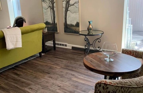 This beautifully renovated space is located in the lower- level of a well established Salon & Day Spa in Hickory, NC. The suite is equipped with private massage and facial areas with a range of luxurious services available to enhance your stay. Perfectly situated near the up and coming downtown where you will find shopping, dining and wine tasting. You are likely to find music and markets on weekends. This historical space has all the comforts of home with the luxuries of a relaxing getaway.