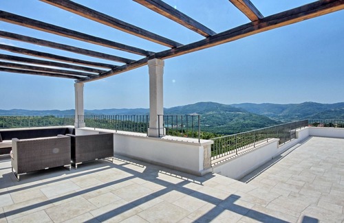 Located in tranquil and beautiful Central Istria with its micro-climate that boasts over 2700 hours of sunshine annually, this superb detached stone villa with 4 bedrooms all with en-suite facilities and private pool has fabulous views over the surrounding vineyards and olive groves.