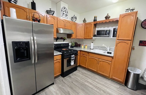 This newly built luxury apartment is a 1 bedroom with a queen bed, futon, 1 bathroom, kitchen, dining area, and comfortably sleeps up to 3. But after two people you pay $25 extra per night per person. It is located in a private cul de sac. There is parking where you can park your vehicle safely. (1 space per stay) Also has TV, with Roku. Everything you need; plates, silverware, towels etc. The desert style landscaped has tables, chairs for lounging. It is a friendly private neighborhood that is 7 min from Harry Reid International Airport, 15 min from the famous strip, Mandalay Bay Hotel and Casino, Luxor, New York New York, MGM Grand, Excalibur, Cosmopolitan, Vdara . 10-15 min from Fashion Show mall and convention center. Fremont Street Experience, SLS Hotel and Casino.
