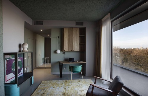 This spacious Suite features a 55-inch flat-screen TV, an integrated sound system, high-speed WI-FI, floor heating, climate control, and an in-room safe. The suite is full-equipped, from the cutlery and hand-blown LEHMANN wine glasses in the kitchen to the hairdryer in the bathroom. The Suite celebrates local Romanian artists and true craftsmanship.