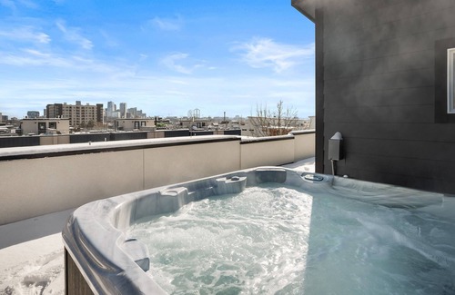 Get the full Denver experience in this luxurious townhome in the heart of the city complete with a rooftop deck, hot tub & fire pit! Soak in incredible views of the Rocky Mountains & Denver skyline all without leaving the home! Walk/scooter to Mile High Stadium, Meow Wolf, Ball Arena, the aquarium, Elitch Gardens, Sloan's lake & countless bars & restaurants. Relax in the oversized living room with large TV and fireplace or head downstairs to play ping-pong or shoot pool in the game room!