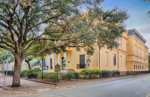 Planning a Savannah getaway with your large group? Consider booking this gorgeous four-bedroom dwelling, which boasts an unbeatable location and luxurious amenities such as private en suite bathrooms and TVs in each room. Guests interested in exploring historic Savannah on foot will find no better home base than this. Just four blocks from Forsyth Park and one mile from downtown, this home provides easy access to museums, art galleries, restaurants, and retail.