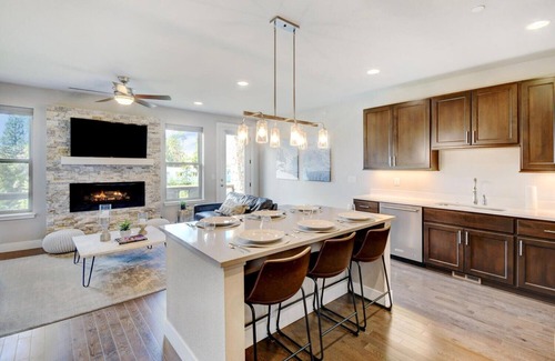 Spanning 2,000 square feet, this spacious chalet features three beautifully appointed bedrooms, including a master suite and a guest king suite, accommodating up to eight guests comfortably. The bunkroom, equipped with twin-over-twin bunk beds, is perfect for kids or extra guests. With 3.5 bathrooms, everyone will have ample space to refresh after a day of adventure.