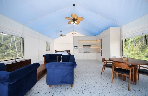 to entire place which includes a 3 bhk villa & 1 bhk glamping tent with attached bathrooms