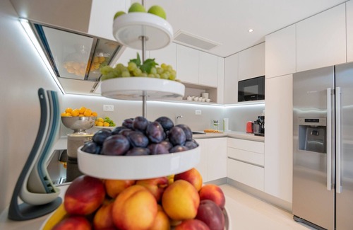 Featuring 9 spacious bedrooms, 11 bathrooms, a living room, kitchen, wine cellar, sauna, and gym, this villa is meticulously designed down to the finest details. All floors are connected by an elevator, providing convenience and easy access to all parts of the villa. On the ground floor, you'll find a fully equipped kitchen and a spacious living room. The second floor houses five bedrooms, the third is equipped with a gym and sauna, while the last floor consists of four bedrooms. The villa's highlight is the private seasonal outdoor heated pool with 20 sun loungers, perfect for refreshing at any time of day or night. On the ground floor, there is another fully equipped kitchen with a wine refrigerator, a game room with table tennis, a PlayStation console, and much more.