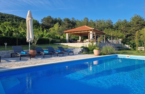 Villa offers all that guests need for nice , relaxed and very private vacation in forest environment of middle Dalmatia . All big cities in region ( Split, Šibenik , Kastela , Omiš , Trogir ... ) or rivers ( Krka , Cetina) are in 30 to 60 min drive , so guests can see all of them during the day rush and still have their own private luxury place for relaxation with family and friends by the large pool or in our "konoba".