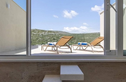Outdoors is a barbecue, an outdoor dining area and a beautiful pool with a waterfall, surrounded by sun loungers and parasols that will provide you with an oasis for refreshment on hot summer days. A trampoline and a slide house are available for the youngest guests in the courtyard.Villa have also a private garden where you can enjoy in many garden fruits. The location of this villa allows complete privacy and a view of the endless greenery of the Dalmatian region, and if you want to feel the sea salt on your skin, you can head to the coast only 2 km from your accommodation and find a piece of blue paradise for yourself. Staying in this beautiful villa, do not miss to visit nearby Trogir, one of the most beautiful Dalmatian cities, rich in magnificent cultural sights, and Split, which hides world-famous historical monuments such as Diocletian's Palace, a UNESCO World Heritage Site.