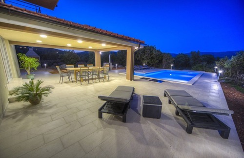 Luxury villa with heated pool, Marina-Trogir is located in Marina. Luxury villa with heated pool, Marina-Trogir provides accommodation, featuring Kitchen, Sports/Activities, Bedding/Linens, among other amenities. This House features Kitchen, Sports/Activities, Bedding/Linens, to make your stay a comfortable one.