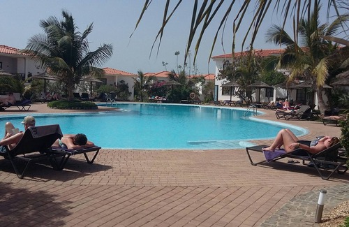 Luxury accommodation situated on Tortuga Beach Resort and Spa, we are second line villa with panoramic sea views. Only steps from the stunning Ponta Preta and Bikini Beach on the Island of Sal. Our luxurious 3 bedroom/3 bathroom villa offers superb accommodation. Your every wish for a holiday villa has been carefully thought out to ensure the most relaxing stay at this beautiful home. The villa is on two levels and has air-conditioning in Master bedroom and Lounge area. The pool and sun terrace are surrounded by beautifully landscaped gardens and exotic flowers. Also our sister Resort Dunas, (in walking distance) has facilities that can be used.