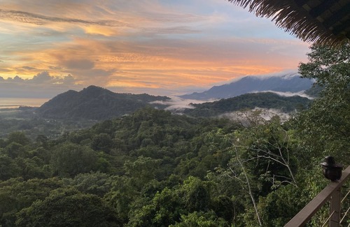 TikiVibez is a Private Tropical Estate that was designed to bring the outdoors in. The 2-acre Jungle property is located near several popular beaches & some of the best restaurants in Costa Rica. Just five minutes off the highway with a Great Ocean View, Infinity Pool & some of the most breath taking sunsets you'll ever experience. Our Ocean View Mountain Retreat near Ojochal is in Tres Rios, in the Southern Zone of Costa Rica. Costa Rica is a paradise for nature lovers and adventure seekers alike. As you enter TikiVibez the tropical lush drive greets you. A main centre building hosts a large chefs kitchen where there is room for all to help! An 8 seat natural trunk table speaks to many fantastic meals or games to enjoy. A large screen tv, comfy seating area and large full bathroom all await in this expansive entertainment space. For your convenience you will also have a full washer and dryer so packing will be a breeze. Both the Monkey Villa and the Toucan Villa mirror each other. At the front of each you will find a king size bed that overlooks the Osa Penninsula and full wrap around decks for all the animal watching one can capture. The back bedrooms each have queen size beds and features air conditioning. (only in the back bedrooms due to the style of the roofing). Ample closet space for your items along with robes for your pleasure after a dip in the pool. A shared bath connects both spaces. For those that need ample wifi, you will enjoy our full speed fiber internet. In the area you will have almost every activity Southern Costa Rica has to offer, zip-lining, whale watching, Corcovado and Cano Island Day Trips, Sierpe Mangrove Tour, Horseback Riding, Kayaking, the famous Whale Tail National Park, Deep Sea Fishing and a picturesque 9 hole golf course with all the needed equipment just an 8 minutes drive South, the list truly goes on. ,