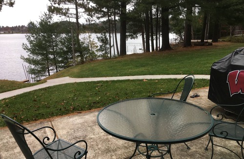 Non-smoking, luxury, like new rustic elegance on lake Minocqua within walking distance to main street shopping and dining. Fully furnished 3 bed 2.5 bath two story condo with gas fireplace, attached garage, large covered deck overlooking lake. Washer Dryer, Lakeside patio with firepit, boat dock with deep water slip available during the day for in and out access -- overnight boat parking on the water is limited, at a cost of $95/stay: PLEASE NOTE ON YOUR RESERVATION IF YOU WOULD LIKE TO REQUEST OVERNIGHT BOAT PARKING -- sand beach, just next door to the Minocqua Yacht Club Bar which has great food, drinks and view. Sleeps 6 in the three bedrooms, can sleep up to 8. Executive master suite with TV and amazing lake view. In and out access for your boat, jet ski or kayaks in the summer and snowmobiles just out the back door in winter. Truly the nicest and best location in the north woods.