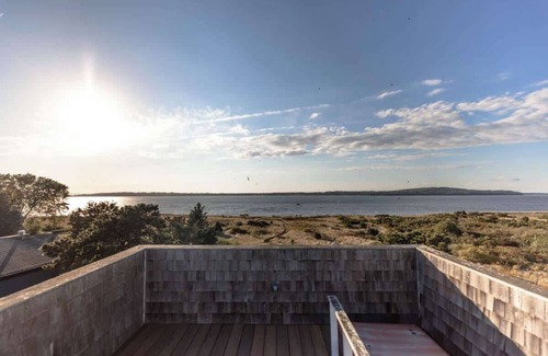 Luxury home with 360 water views, beach access, roof top deck with private events available. This home sits at the tip of Aquidneck island allowing for water to be seen from every window of the home. Marble countertops throughout kitchen and baths, two decks facing water from back of house, oversized back yard and parking for 4. The perfect home for your family vacation. Just grab your swimsuits, you wont need much more.