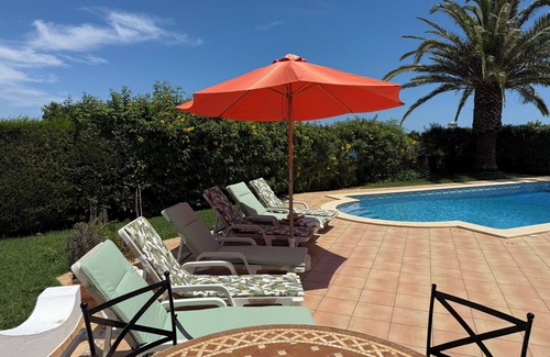 3 bathrooms, villa. Fabulous location, Pool can be heated May -October months. Large 10x5m saline swimming pool with the option to heat, and FREE pool fence for small children erected should it be requested. Set within large mature, fully landscaped and irrigated gardens. Private secure parking. BBQ. Child cot and baby hi-chair, childrens Toys free and available on request. 1/2km numerous bars and restaurants. 3/4km to Luz and Burgau beaches. Free WiFi, 7km to Lagos. UK TV including SKY sports, German, Dutch, French and Swedish TV channels, Broadband. The villa has 36 reviews with 5 stars on Tripadvisor. Pool heating available as an optional extra. A car is not essential but we recommend. Road to property is unmade, and from time to time dusty, and subject to maintainence work, please be aware and drive cautiously especially if arriving at night to the property. Please note we have to by Portuguese law, advise the local tourist authorities, all guest details. So we will need all guests staying in the property to advise us details, passport or ID number, place of birth, date of birth, residential address.