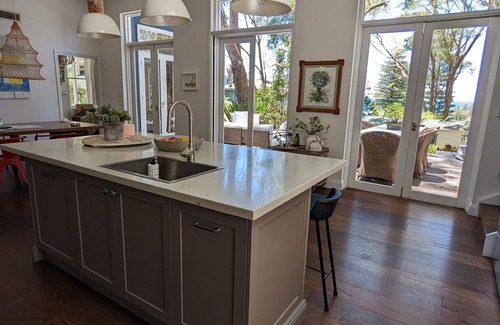 Classic beach house just a short stroll (100m) to beautiful MacMasters Beach. Sit on the deck under the gums or head down for a surf. Relax in front of the fire or cook up something special in the gourmet kitchen. The house has three bedrooms, two with queen beds and a bunk room with 4 amazing double bunks. Ideal for two families to holiday in style. All linen and bath towels are included.