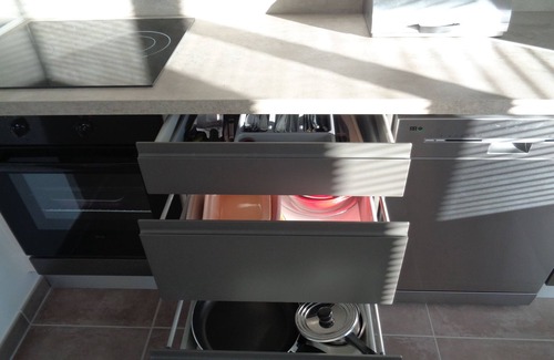 - a kitchen (with oven, microwave, ceramic hob, extractor hood, dishwasher, crockery)