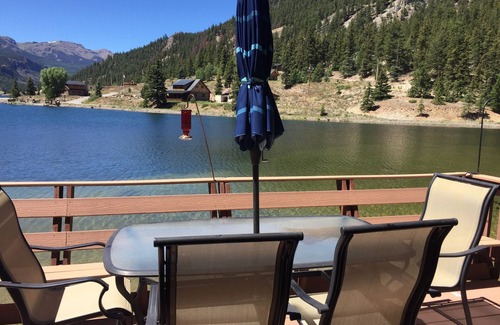 Location, Location, Location! Many people feel this property is similar to being on a houseboat. The spacious deck is directly over the water of Lake San Cristobal. You can hear the lapping of waves as you read or eat on the lovely front deck. The majestic mountains surrounding the lake are green in summer, aspen covered in fall, and snow covered in winter.