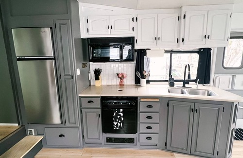 Reconnect w/nature in this remodeled-with-love, 32 foot RV! It's spacious, comfortable, & offers stunning views any way you look. It is large enough to sleep up to 6 people w/ a queen bed, queen air mattress, futon sofa, & rear sleeper bench. Located in beautiful, Leeds RV Park, you will have access to all its amenities; laundry, public showers & restrooms, shaded lawn areas, fire pits, & clubhouse stocked w/games. Conveniently Located near Zion Ntl Park, Snow Canyon St. Park, local lakes +more!